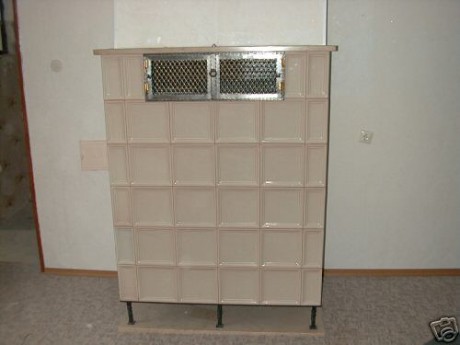 Falra épített kandalló, cserépkályha, mogyoró