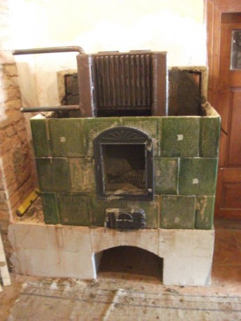 Néhány mostanában épült cserépkályha, az építés folyamán