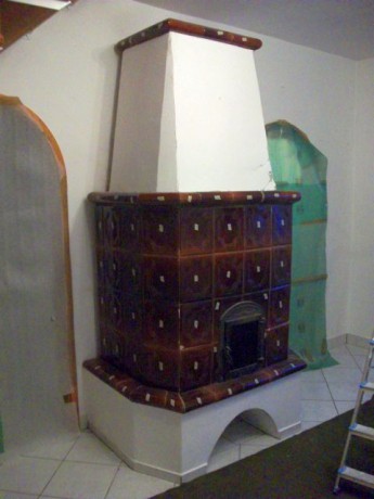 Néhány mostanában épült cserépkályha, az építés folyamán